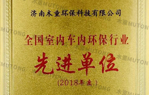 濟南木童環??萍加邢薰緲s獲2018年度全國室內車內環保行業先進單位